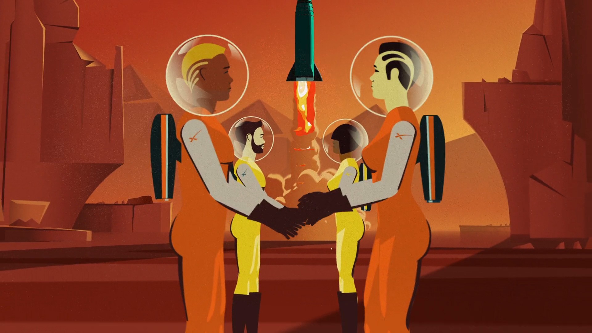 The SpaceX Mars Travel posters were so inspiring that we decided to animate them. We fell in love with the retro-futuristic Mars landscapes and brought them to life through animation.