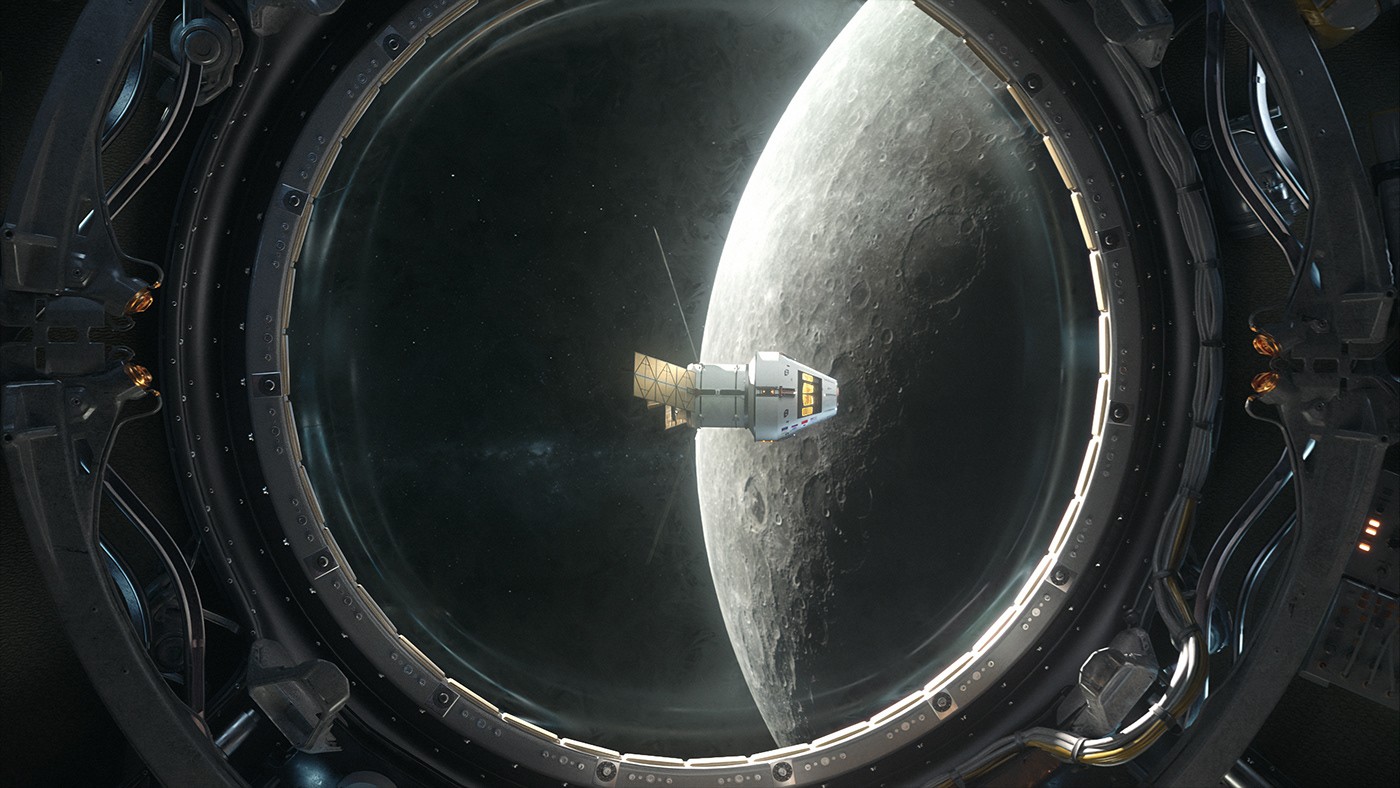 Produce a promotional film using classic space iconography to evoke a positive emotional response. Establish an informative and educational tone to guide the viewer’s imagination into moon colonization’s fantastic possibilities.
