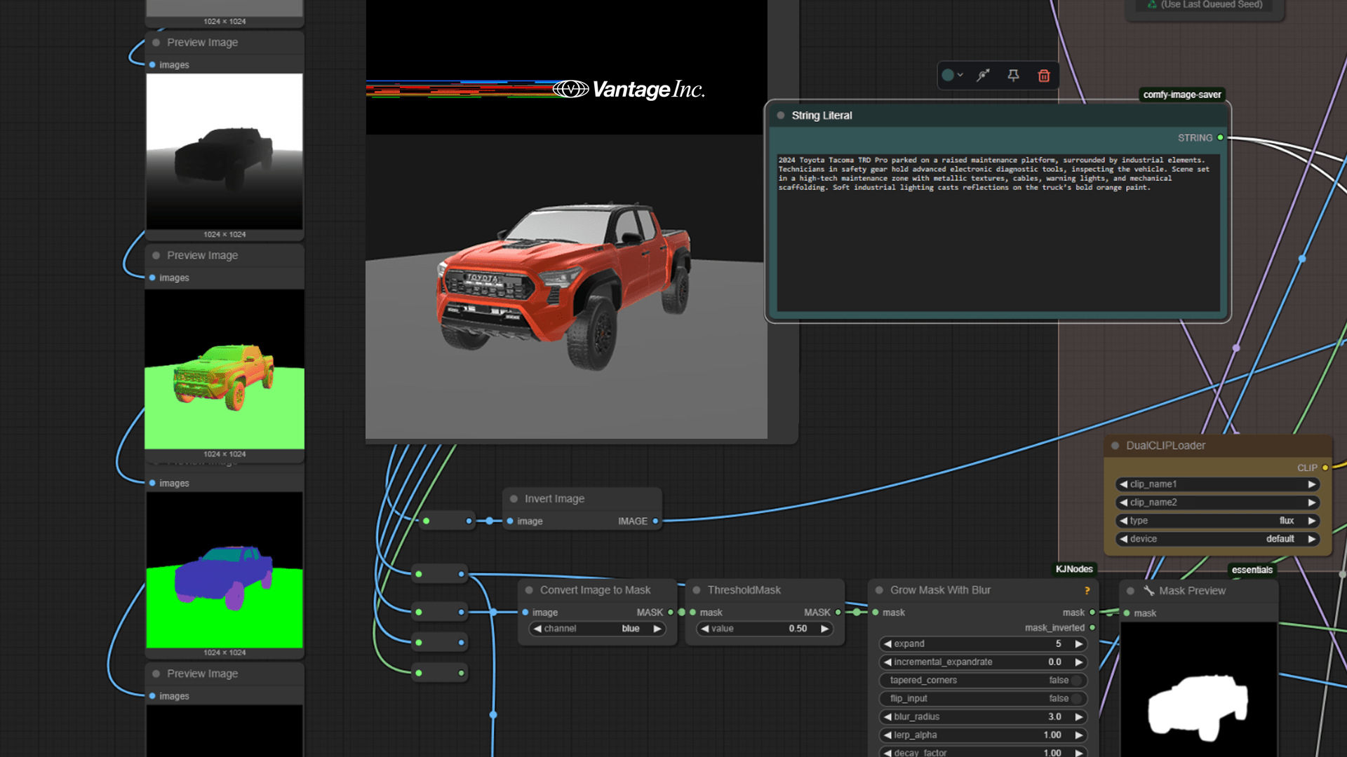 Our AI + 3D workflow for precise car model visualizations, demonstrated here with a trained AI model of the Toyota Tacoma TRD Pro.